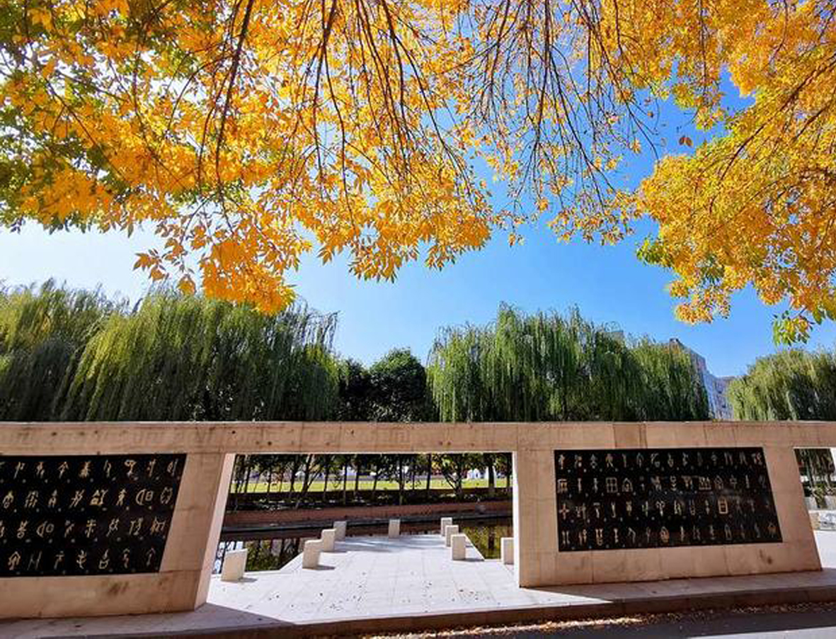 赏明德,杨柳依依、惠风和畅;观旭日,草长莺飞、旗帜高扬;行至善,波光粼粼、时见锦鲤;勤求索,格物致知、心怀天下;明五行,穿梭时空、感悟人生;志凌云,翱翔蓝天、飞越巅峰;传薪火,弘扬文化、砥砺精神。