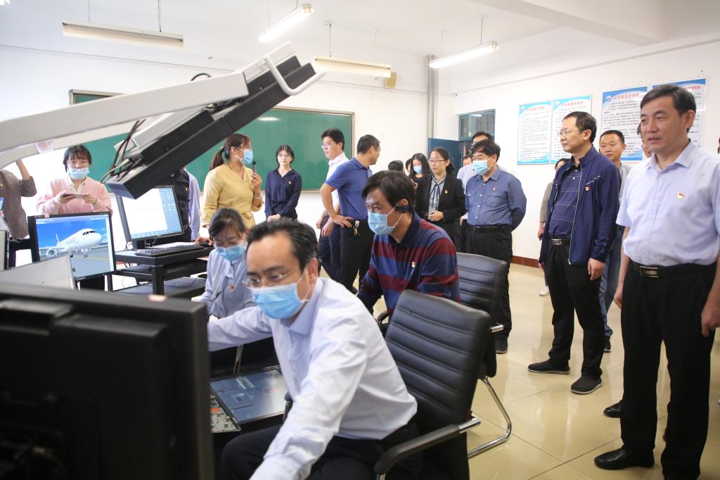 9月28日上午,安阳市委组织部副部长程晓东等45人到我校参观调研。我校党委副书记吴建军,高新区党工委副书记、管委会常务副主任牛福生,文峰区委常委、组织部部长李友成以及我校校办、组织部、人事处、化学与环境工程学院、生物与食品工程学院、飞行学院等相关部门负责人陪同参观。程晓东等人先后到我校化学与环境工程学院实验中心、生物与食品工程学院食品检测中心、飞行学院实训中心进行了参观调研,认真听取了我校部门领导和讲解人员的讲解,饶有兴味地体验了飞行模拟训练器,对我校教学、科研等各项事业发展成就表示赞赏。