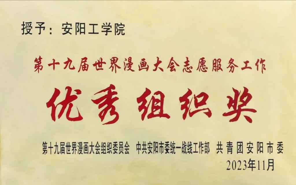 近日,由安阳市人民政府、国际漫画家大会中国委员会、河南省文化和旅游厅等联合主办的第十九届世界漫画大会成功举办,我校积极参加志愿服务,并荣获志愿服务工作“优秀组织奖”。