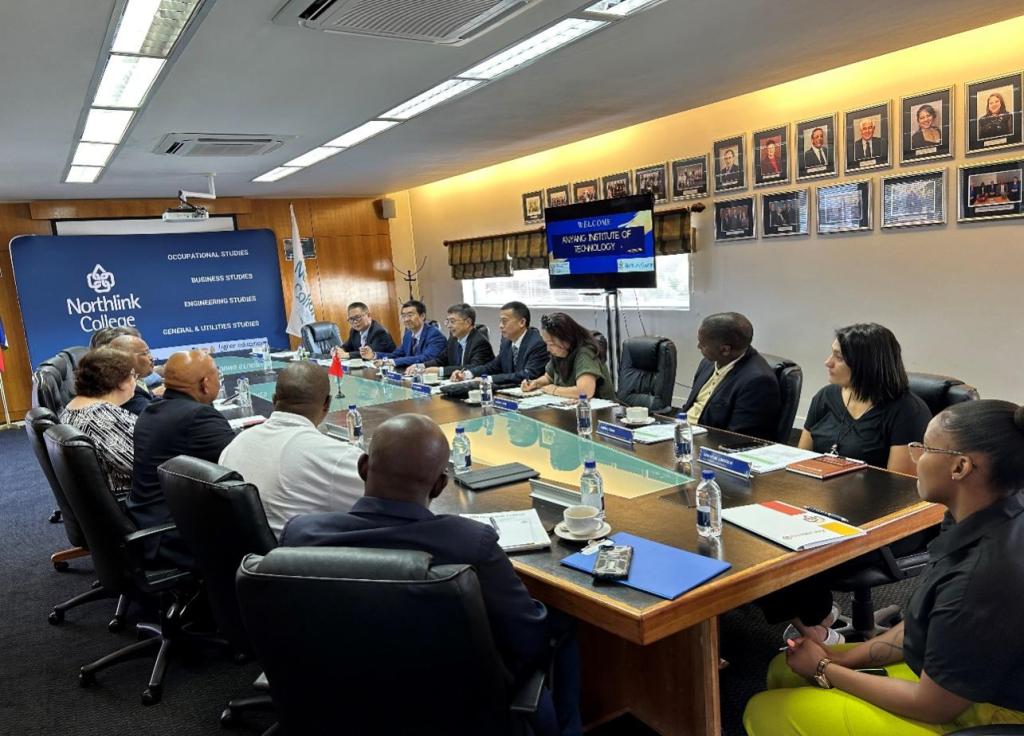 在北联学院,该校校长Xolelo Brian Phike、副校长Sandra Raubenheimer女士等会见了万鹏杰、彭仁海一行。双方就师生互派、教学科研合作等进行了磋商。Xolelo Brian Phike表达了希望该校建筑学与机械类专业学生赴我校进行交流学习的愿望,并对两校共建孔子课堂等进行磋商。