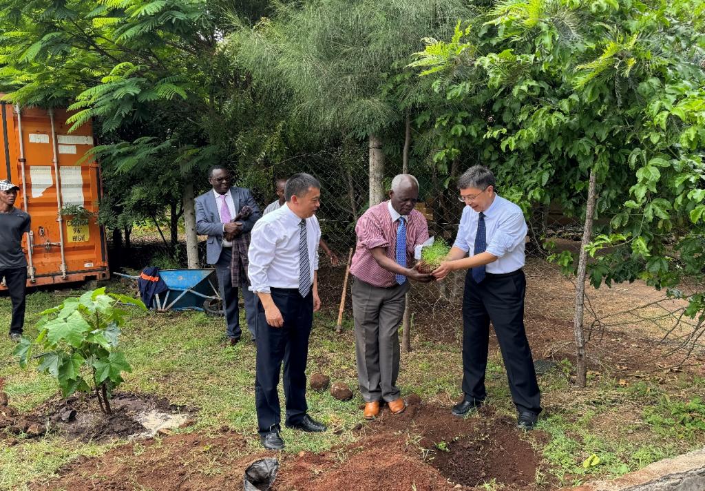 万鹏杰一行在肯尼亚飞行学院校园植下“中非友谊树”