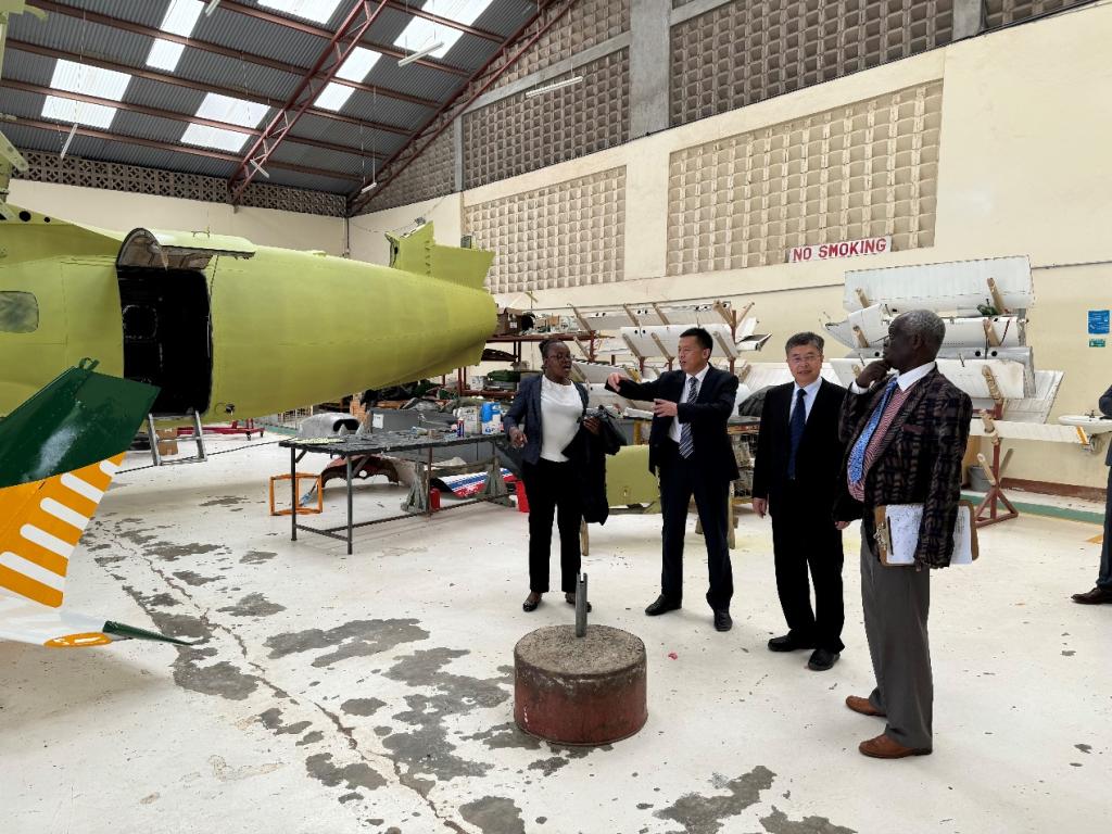 万鹏杰一行参观肯尼亚飞行学院飞机保养维修车间