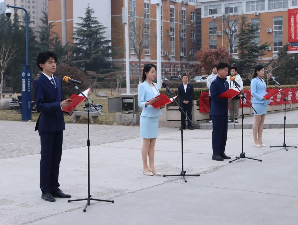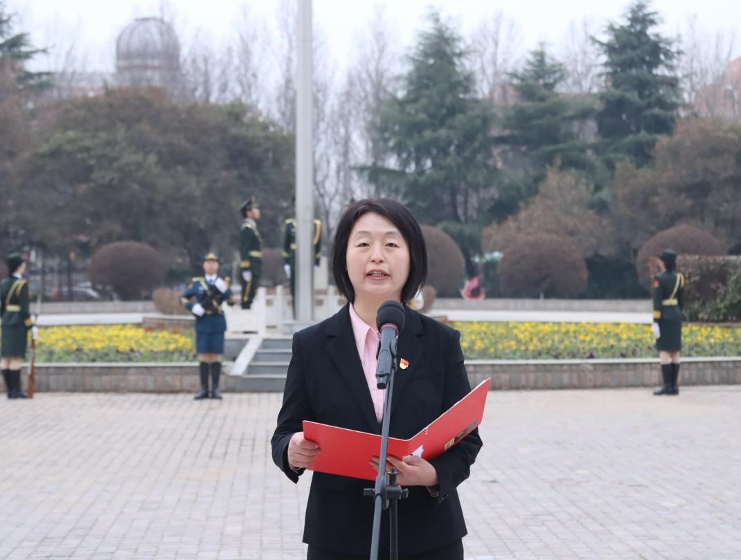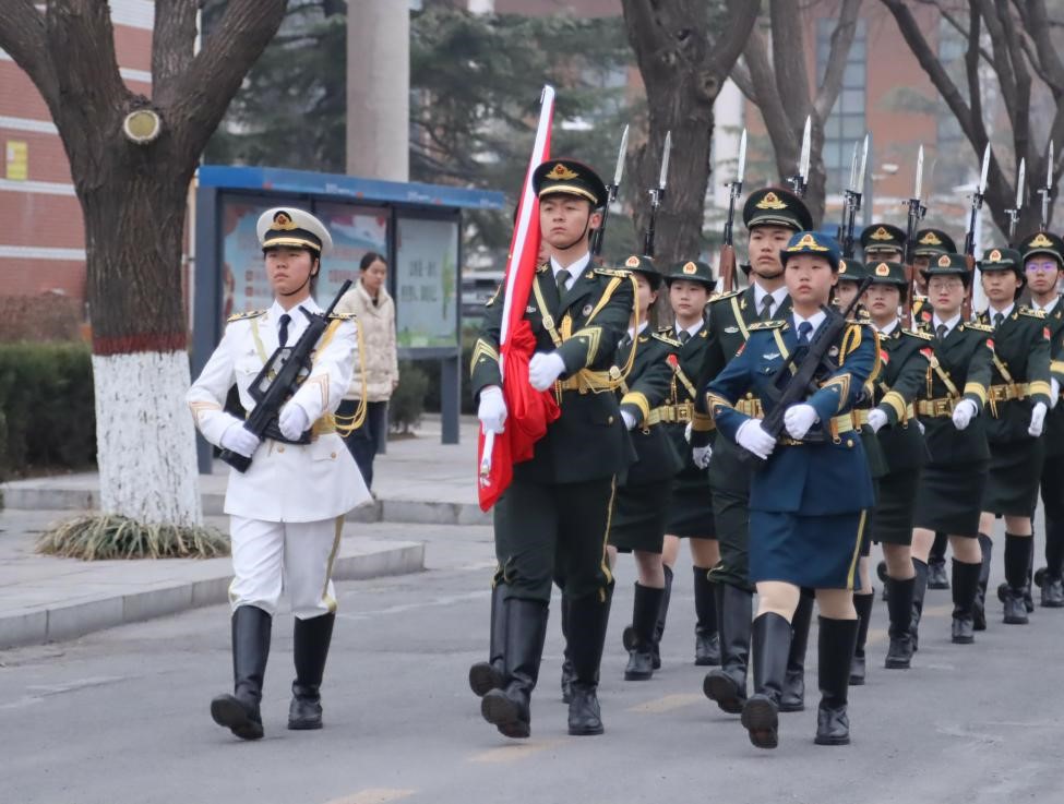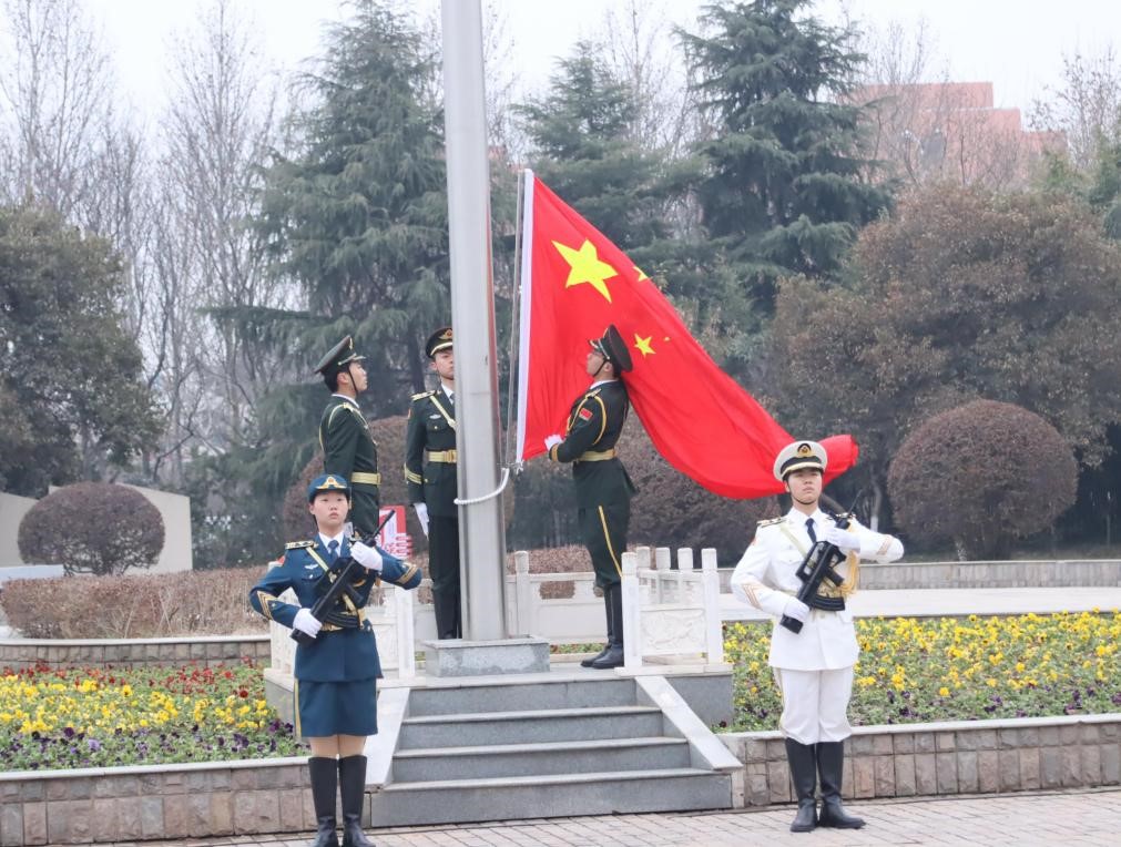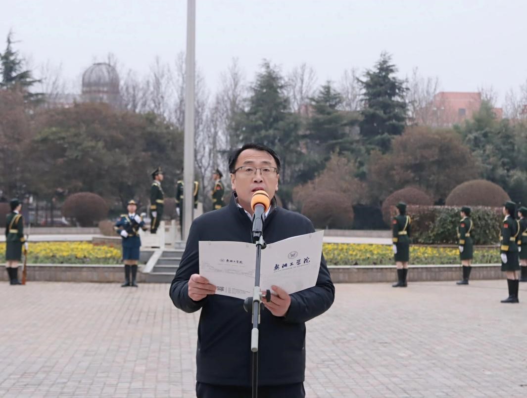 3月4日上午,我校2024年新学期升旗仪式在主教楼前隆重举行,校领导沈记全、万鹏杰、蒋文龙、牛瑞庆、王红艳、彭仁海出席。各学院负责人、相关职能部门负责人、辅导员代表及学生代表共2800余人参加了升国旗仪式,校团委书记尹艺蓓主持仪式。