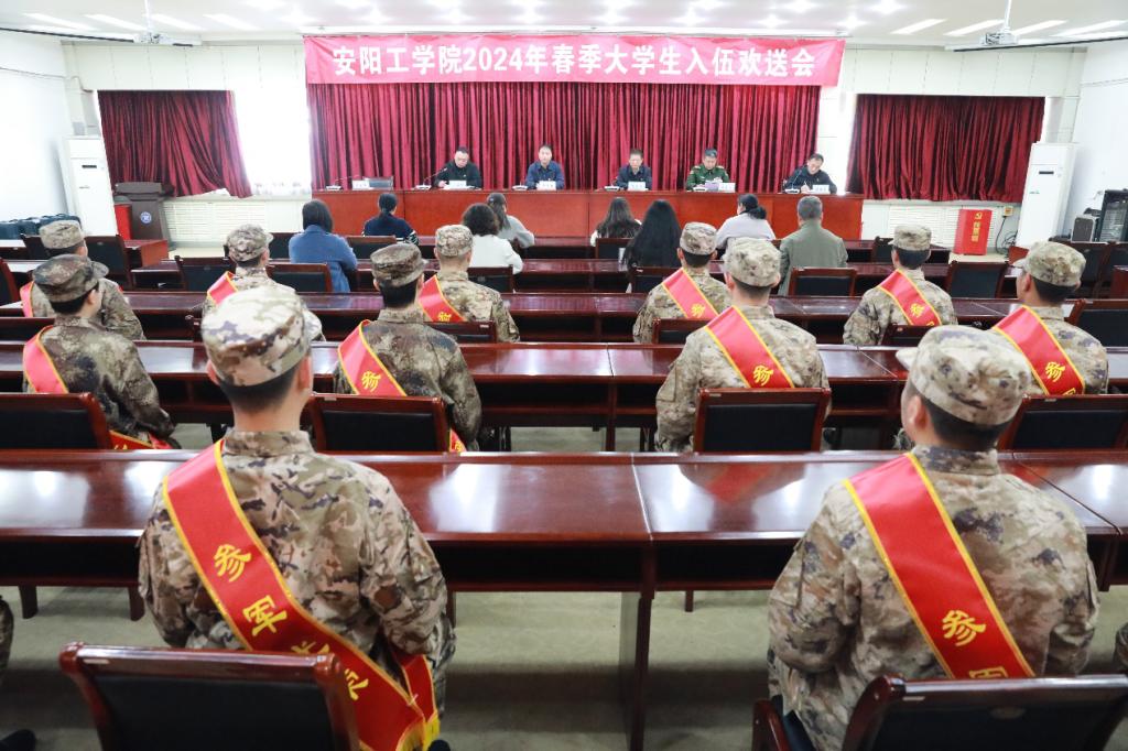 从戎报国英雄志,风华正茂踏征程。3月14日上午,我校2024年春季大学生入伍欢送会在行政楼四楼会议室召开。副校长蒋文龙、文峰区人武部上校部长张贤利出席会议。党委宣传部、学生工作部、人民武装部部门负责人,相关学院党总支副书记及2024年春季入伍的15名学生参加会议。会议由人民武装部部长刘韶晖主持。