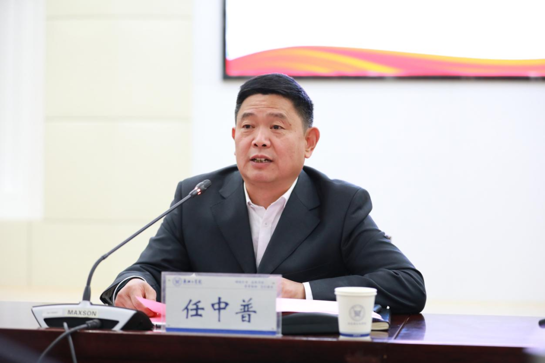 任中普介绍了学校发展特色,以及学校思政课程建设、思政课教师队伍和学校特色文化育人体系等方面的工作成绩。他表示,学校将继续加大力度加强马院建设,继续紧扣党的理论创新要求,聚焦“体何以立”“用如何达”等深层次关键问题,致力于学习研究阐释习近平文化思想;聚焦“打造中华文化新地标、我为强市建设作贡献”,致力于贯彻落实习近平总书记视察安阳重要讲话精神,坚持理论研究赋能地方发展,发挥好新型智库作用,乘势而上作好“打造红旗渠精神高地”和“扛稳优秀传统文化保护传承使命”两篇文章,力求取得新突破;聚焦提升马院建设和思政课程建设效能,致力于贯彻落实习近平总书记关于思政课的系列重要论述,对标马克思主义学院建设标准和思想政治理论课建设标准,力求谱写新篇章。