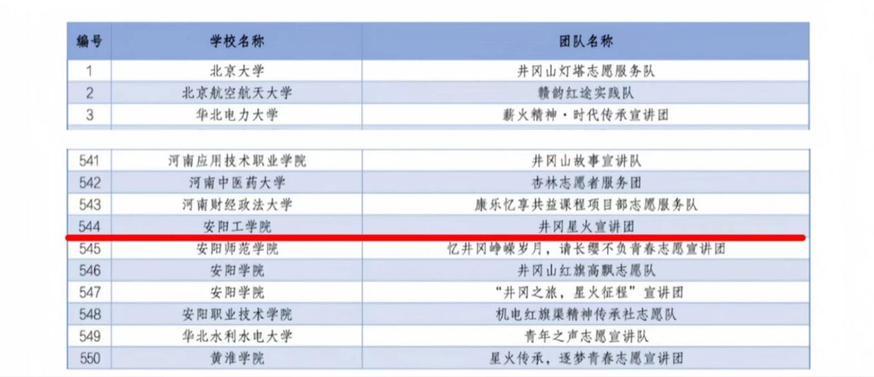 为深入学习贯彻习近平新时代中国特色社会主义思想和党的二十大精神,落实“强国复兴有我”群众性主题宣传教育活动相关要求,引导动员青年学生大力弘扬井冈山精神,团中央青年志愿者行动指导中心、全国青少年井冈山革命传统教育基地管理中心近日联合发布了《关于遴选2024年全国大学生井冈山精神志愿宣讲团的公告》。主办单位对所有材料进行了认真审阅,最终遴选出882所高校的1000支大学生志愿服务团队。4月3日,中国青年志愿者官方微信公众号发布了《2024年全国大学生井冈山精神志愿宣讲团入选团队名单》,ag九游会登陆j9入口井冈星火宣讲团成功入选。