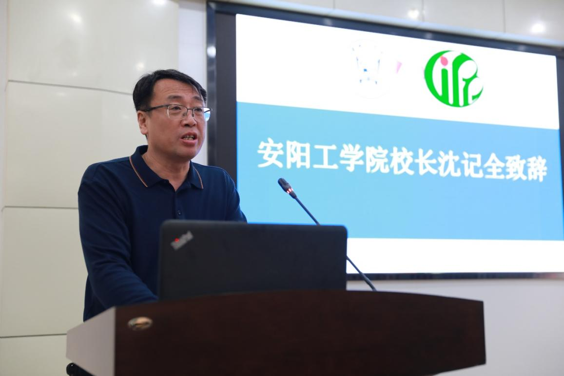 沈记全致辞,对中国农业科学院植物保护研究所一行的到来表示欢迎,并详细介绍了学校的办学历史、理念、特色,以及专业设置、师资力量、教学科研等情况,表示将全力支持生物与食品工程学院与中国农业科学院植物保护研究所的共建合作。