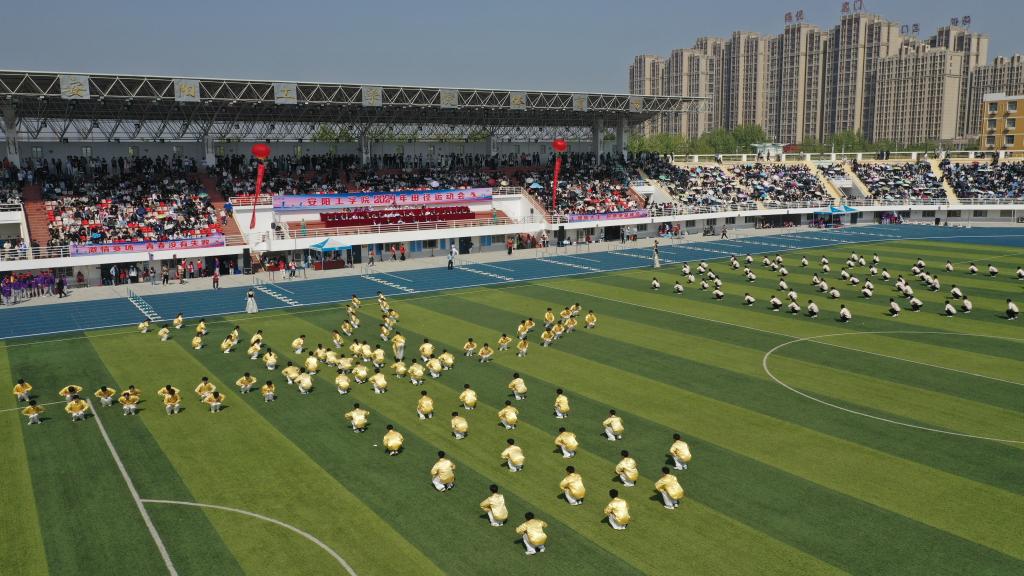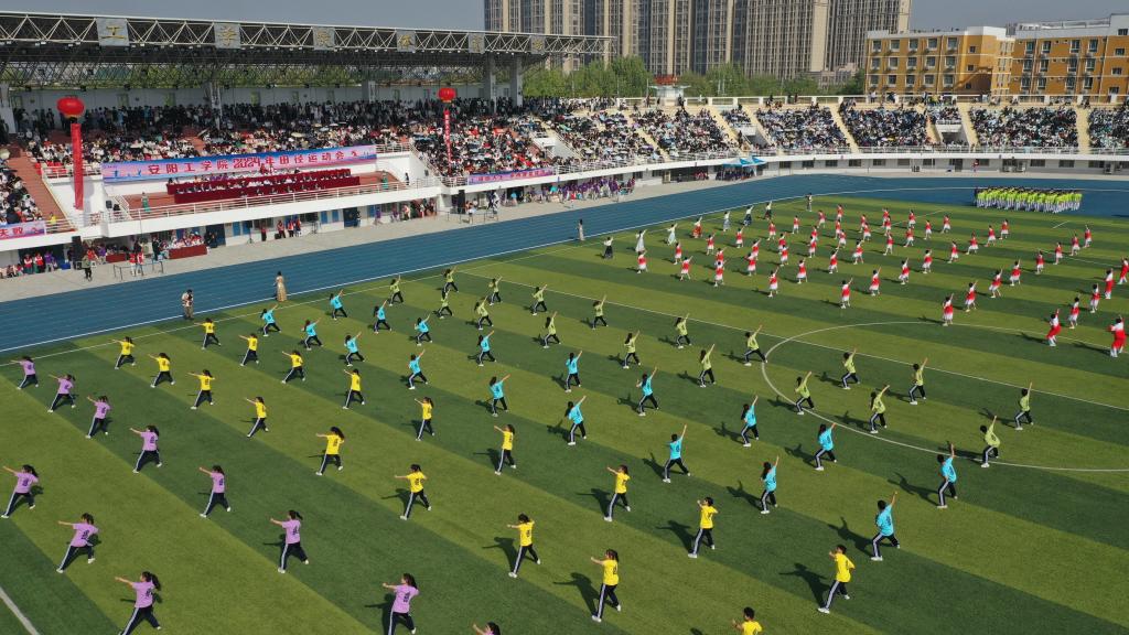 2024年4月18日上午,我校在体育场举办甲骨文广播体操比赛,校党委书记任中普,校长沈记全,校党委副书记牛瑞庆,副校长万鹏杰、彭仁海、闫春岭,运动会组委会、相关职能部门、二级学院负责人及近万名师生现场观看了比赛。