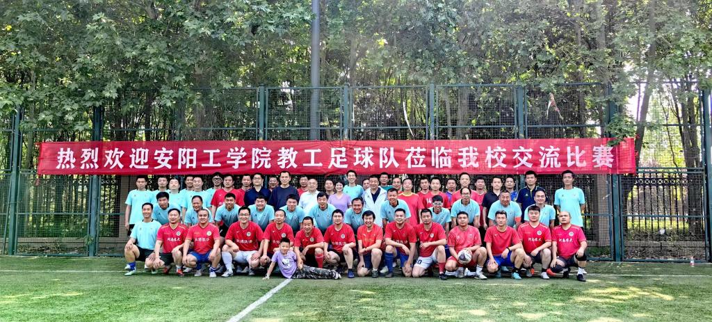 为增进校际交流与合作,提高教职工足球水平,近日,在校工会、体育教学部统筹安排下,我校教工足球队赴河南农业大学进行交流,并举行足球友谊赛。河南农业大学党委副书记游舸、工会副主席侯金超,我校党委副书记陈书章、纪委书记王红艳现场观摩指导比赛。