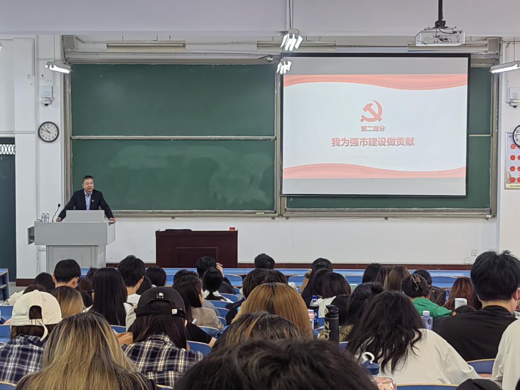 万鹏杰结合党的二十大精神和习近平总书记视察河南安阳重要讲话精神,以贯彻落实《中共河南省委、河南省人民政府关于支持安阳以红旗渠精神为引领建设现代化区域中心强市的意见》为出发点,从“弘扬传承红旗渠精神”“我为强市建设做贡献”和“大学生的使命担当”三个方面进行了讲解。
