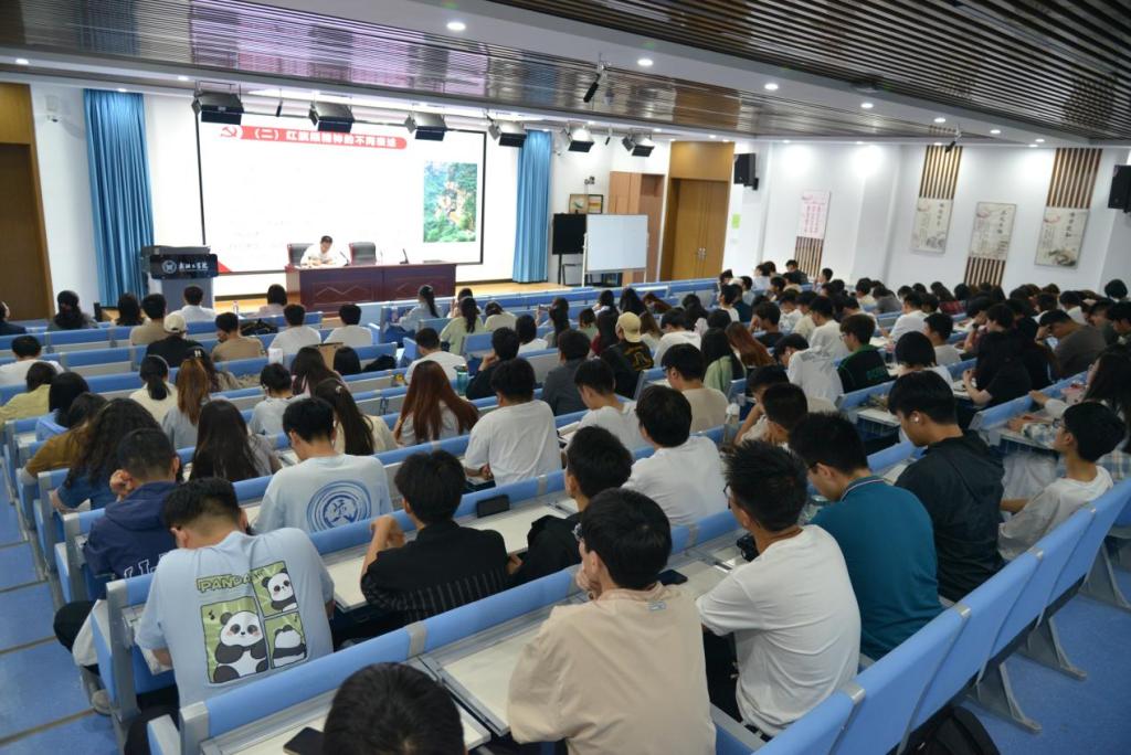 杨卫东以《永远的红旗渠—红旗渠精神及对当代大学生的启迪》为题,从“什么是红旗渠精神、红旗渠精神的历史定位、红旗渠精神对当代大学生的启迪”三方面深入讲解了红旗渠工程的修建过程及红旗渠精神的丰富内涵。从人民立场、求真务实、敢想敢干、组织群众,严于纪律五个方面,勉励同学们努力学习本领、用红旗渠精神激发干事创业的青春力量,在实现强国建设、民族复兴的新征程上建功立业。
