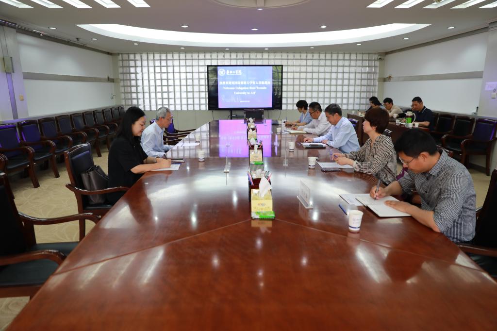 会上,万鹏杰代表学校对许东来教授一行的到来表示欢迎,对他长期以来为两校合作的辛勤付出表示感谢,回顾了两校合作办学项目实施十多年来在人才培养、师生交流、教学科研合作等方面取得的成绩,希望两校进一步拓展合作领域,打造两国高等教育合作典范。许东来教授对我校的热情接待表示感谢,充分肯定了两校合作所取得的突出成绩,对下一步两校合作办学项目教学安排进行了部署,对两校深化合作提出了建议。