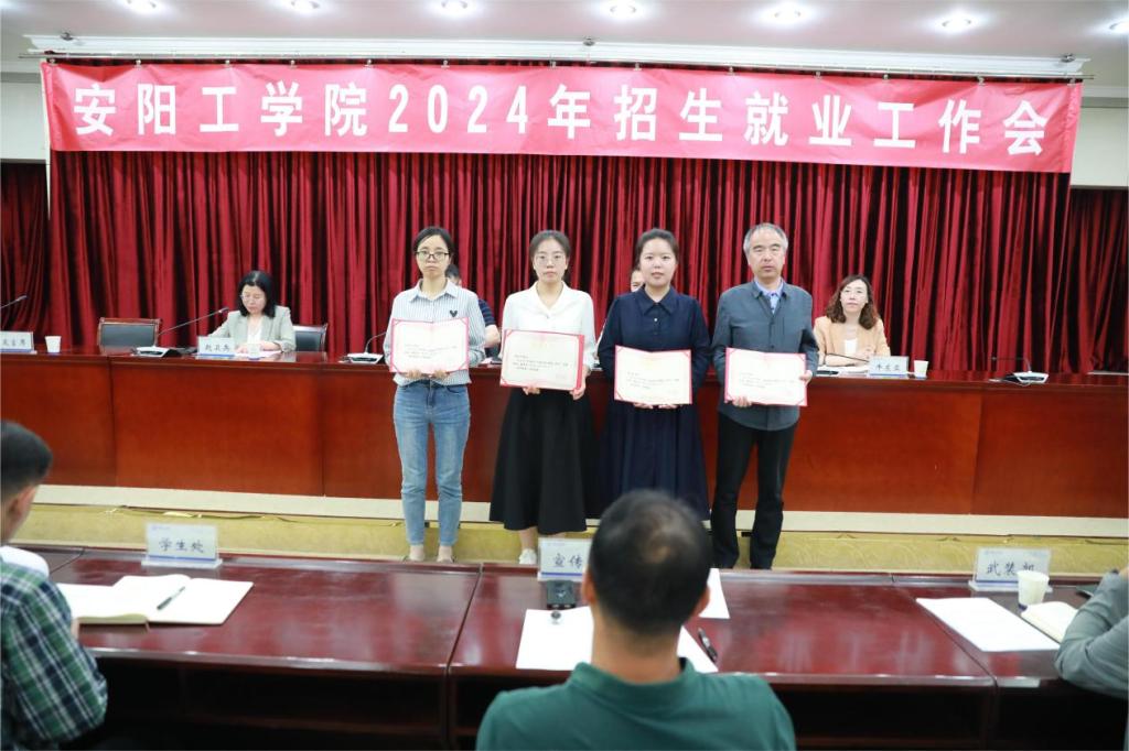 会议听取了招生与就业指导处处长牛东亚关于2023年度招生就业工作报告。与会领导为2023年度就业工作先进集体、进步集体和个人颁发奖牌和证书。先进集体代表数学与信息科学学院院长王锋、进步集体代表外国语学院副院长杜丽霞、先进个人代表土木与建筑工程学院辅导员闫瑞雪进行了交流发言。