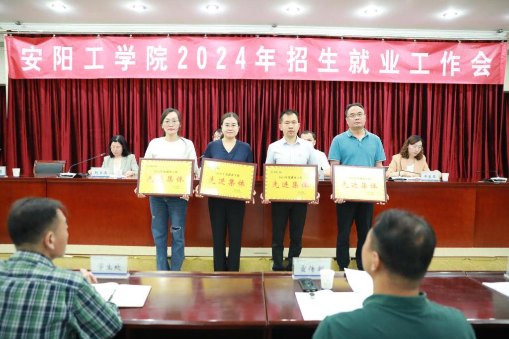 会上,沈记全向受到表彰的先进集体、进步集体和先进个人表示祝贺,并就做好我校2024年招生就业工作提出三点意见:一是回顾工作,总结经验,增强成就感。2023年,学校提前谋划,调整招生计划,加大宣传力度,招生工作总体圆满。全校上下齐心协力,多措施、多途径开展就业服务,毕业生去向落实情况保持稳定。这些成绩是校党委、行政坚强领导的结果,更是各学院、相关部门通力协作,共同努力的结果。二是聚焦任务,分析形势,增强紧迫感。招生工作方面,新高考模式下招生录取方式更加强调专业特色,为学科专业特色性强的高校提供加快发展的机会,同时也为某些优势不明显的专业敲响警钟。就业工作方面,高校毕业生就业形势依旧严峻复杂。面对这些问题,我们要深刻总结反思、分析研判,调整学科专业结构,优化课程体系,提高课堂教学效果,加强学风建设,落实落细招生就业各项工作,提升学生就业竞争力。三是强化组织领导,落实具体任务,增强责任感。招生方面,要精准定位目标群体,有针对性地开展招生宣传;深度解读专业信息,依托培养目标、课程设置、专业发展前景等方面展示专业的魅力和实力;在招生宣传及新生入校后持续加强专业普及。就业方面,要深化“一把手”工程,强化毕业生就业工作的主体责任;在拓展就业资源上求实效,持续推进访企拓岗促就业专项行动;加大就业思想教育力度,上好职业生涯规划、就业指导课程;严肃就业统计核查,确保毕业生真就业、就好业。