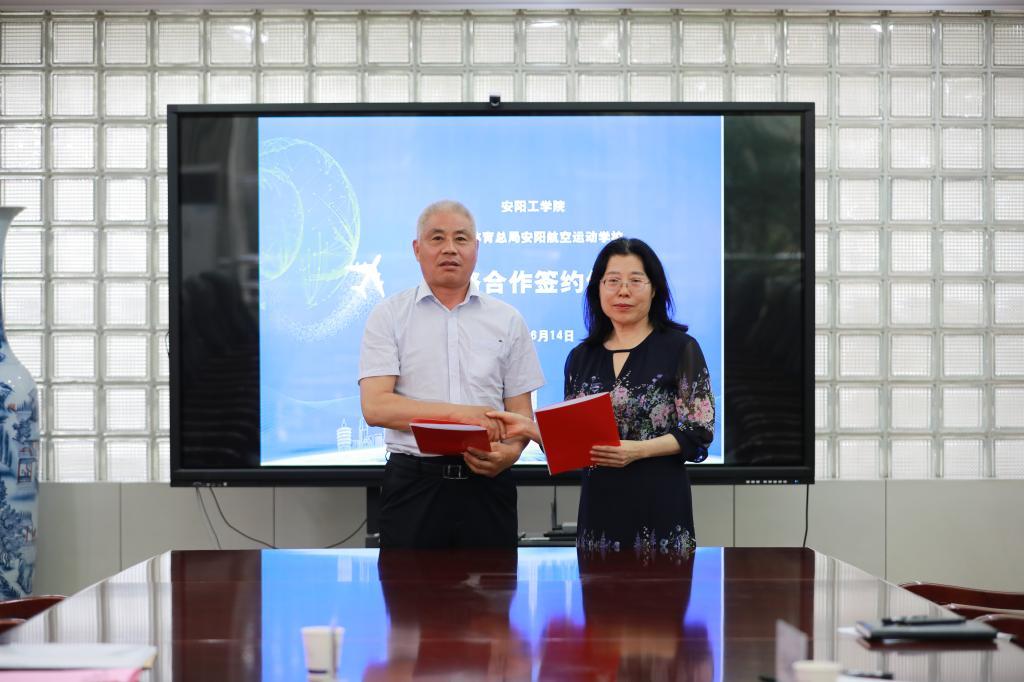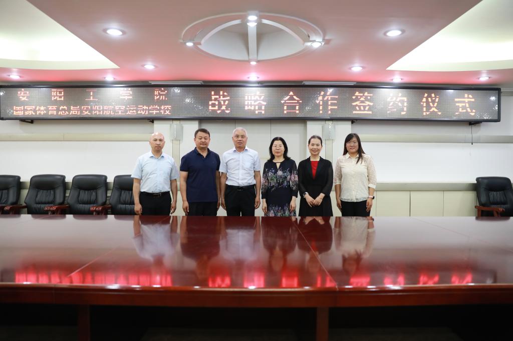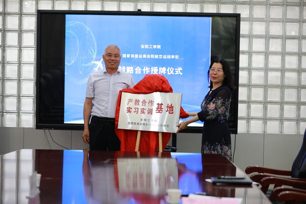 6月14日上午,我校与国家体育总局安阳航空运动学校在行政楼二楼会议室举行战略合作签约暨揭牌仪式,副校长赵卫兵出席仪式。国家体育总局安阳航空运动学校副校长冯金平、安全保卫处处长张志强,飞行学院领导班子及教师代表参加,会议由飞行学院院长张海峰主持。