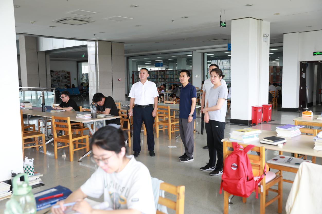 彭仁海首先实地查看了地下室图书搬迁情况,详细了解搬迁进度和存在困难。随后,走访查看了图书馆一至五层区域,实地了解书库图书存放情况、学生自习室环境整治及管理情况、暑期学生留校备战考研和假期值班安排情况,并对图书馆藏书空间的规划利用提出了具体要求及调整意见。