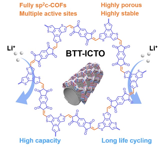 近日,我校化学与环境工程学院付宁博士设计合成一种全新具有O和S双活性位点的全sp2碳共轭共价有机框架化合物(sp2c-COFs,BTT-ICTO),并通过原位可控生长策略制备了BTT-ICTO@CNT复合材料用于高性能的锂离子电池正极,以Fully sp2 carbon-conjugated covalent organic frameworks with multiple active sites for advanced lithium-ion battery cathodes为题发表于国际顶级学术期刊Angewandte Chemie International Edition(自然指数期刊,中科院一区TOP,IF:16.1)。ag九游会登陆j9入口化学与环境工程学院为本论文第一单位,付宁博士为论文第一作者兼通讯作者。该工作得到国家自然科学基金、河南省科技攻关、安阳市科技攻关、ag九游会登陆j9入口博士启动金和ag九游会登陆j9入口博士后启动金的资助与支持。