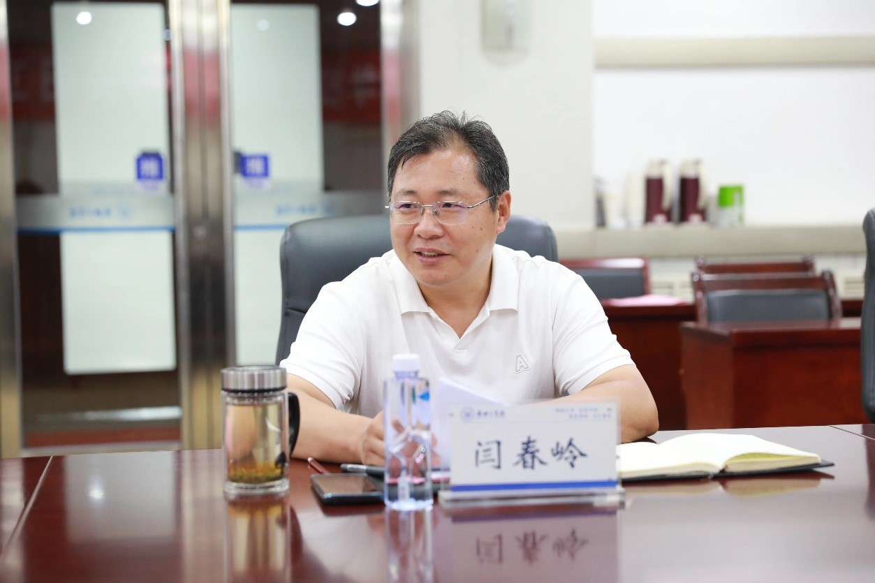 闫春岭致欢迎辞,对查佐明一行来学校调研交流表示热烈欢迎,并介绍了我校办学基本情况、办学特色、发展方向以及后勤服务保障建设情况等方面工作情况。会上,侯永强就如何做好学校水电暖基础服务保障及节能减排工作成效做了介绍。随后,双方围绕学生餐饮、医疗保障、物业服务、基础保障等展开讨论,并就新形势下大学后勤高质量发展的路径和方法进行深入的交流与探讨。