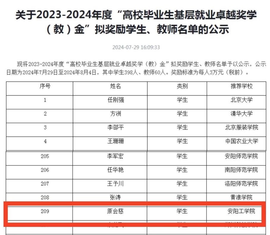 近日,在教育部、中国长江三峡集团和中国教育发展基金会联合组织开展的2023-2024年度“高校毕业生基层就业卓越奖学(教)金”评审工作中,我校机械工程学院机械电子工程专业2016届毕业生原会慈荣获该项奖学金。
