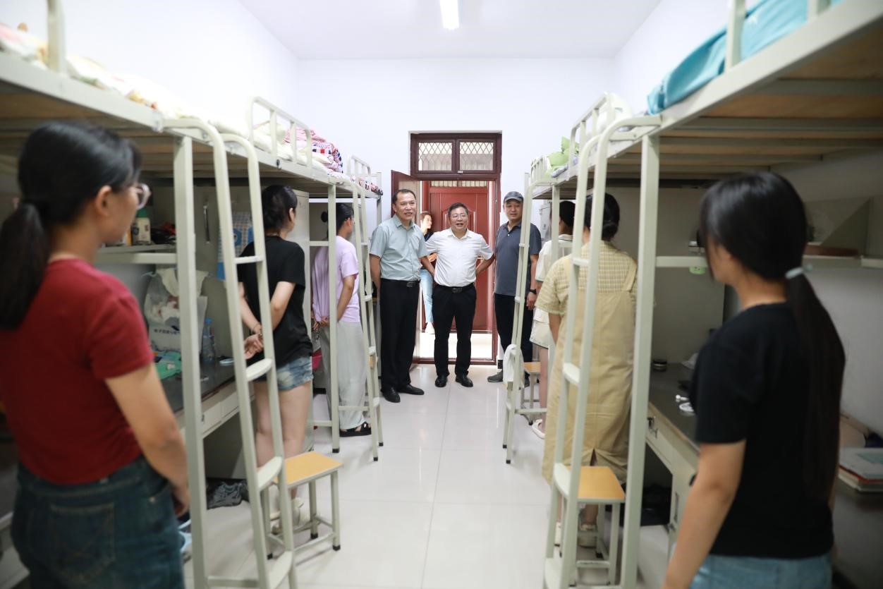 随后,校领导一行深入学生宿舍,实地查看宿舍设施、卫生状况及生活环境。他们与新生亲切交谈,关怀学生的住宿生活,并送上了温暖的鼓励和励志寄语,激励新生们珍惜大学时光,勤奋学习,勇敢追梦。