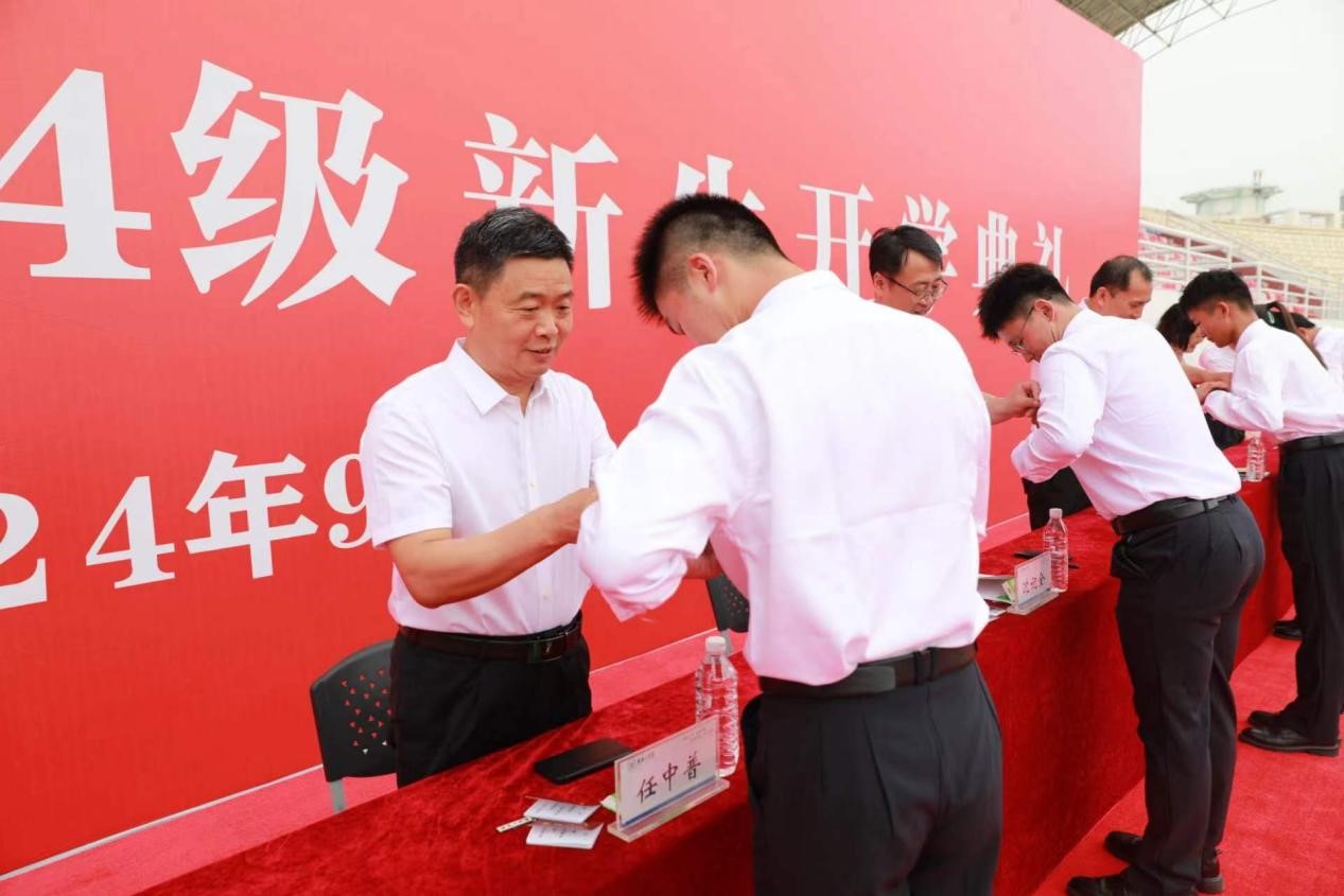 9月9日上午,我校2024级新生开学典礼在体育场隆重举行,校领导任中普、沈记全、牛瑞庆、陈书章、万鹏杰、王红艳、赵卫兵、闫春岭、刘林出席。各学院党政负责人、相关职能部门负责人、新生辅导员及全体2024级新生参加开学典礼。副校长闫春岭主持开学典礼。