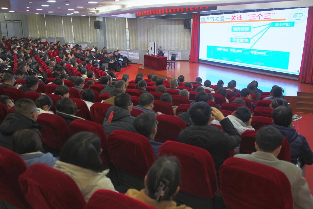 为精准把握审核评估内涵,高质量完成审核评估准备工作,11月26日,学校特邀教育部评估专家、河南理工大学张新民教授作了题为《审核评估审什么?何为证?怎么做?如何谈?》专题报告。校领导班子成员,全体中层干部、党政部门的全体科级干部、各院(部)教研室主任、团总支书记、教学秘书、骨干教师等400余人参加了培训会。副校长赵卫兵主持会议。