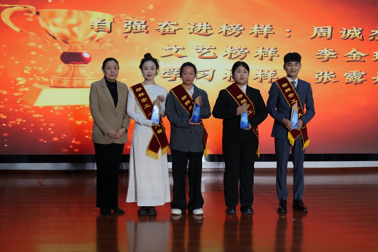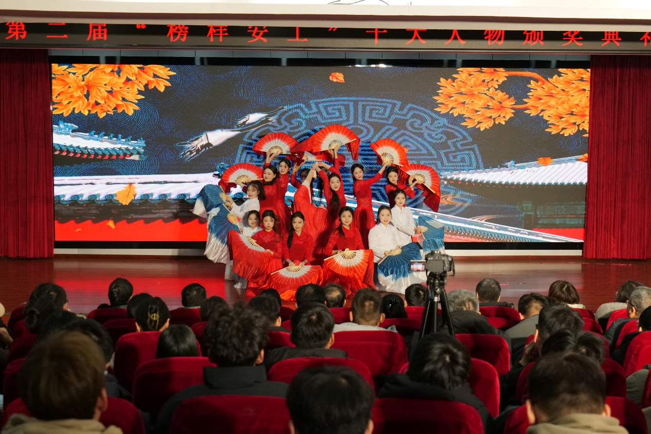 颁奖典礼分别对科技创新、社会实践、自强奋进、学业优异、文体先进五类榜样人物进行颁奖,此外,颁奖典礼穿插有合唱《蜗牛》《ag九游会登陆j9入口校歌》、舞蹈《扇舞丹青》、朗诵《生活在英雄们中间》、舞台剧《记忆中的安工》等节目。