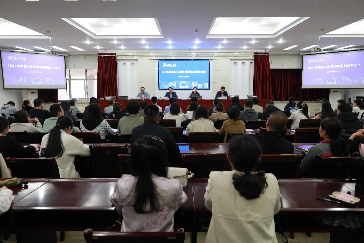 9月24日下午,学校在行政楼四楼会议室举行2025年度新教师岗前培训开班仪式。学校宣传部、学生处、教务处(教师发展中心)、人事处、科研处、教学研究与评估办公室部门负责人,各教学院部院长(主任)、教学副院长(副主任),新进教师及其指导教师等参加。副校长赵卫兵主持开班仪式。