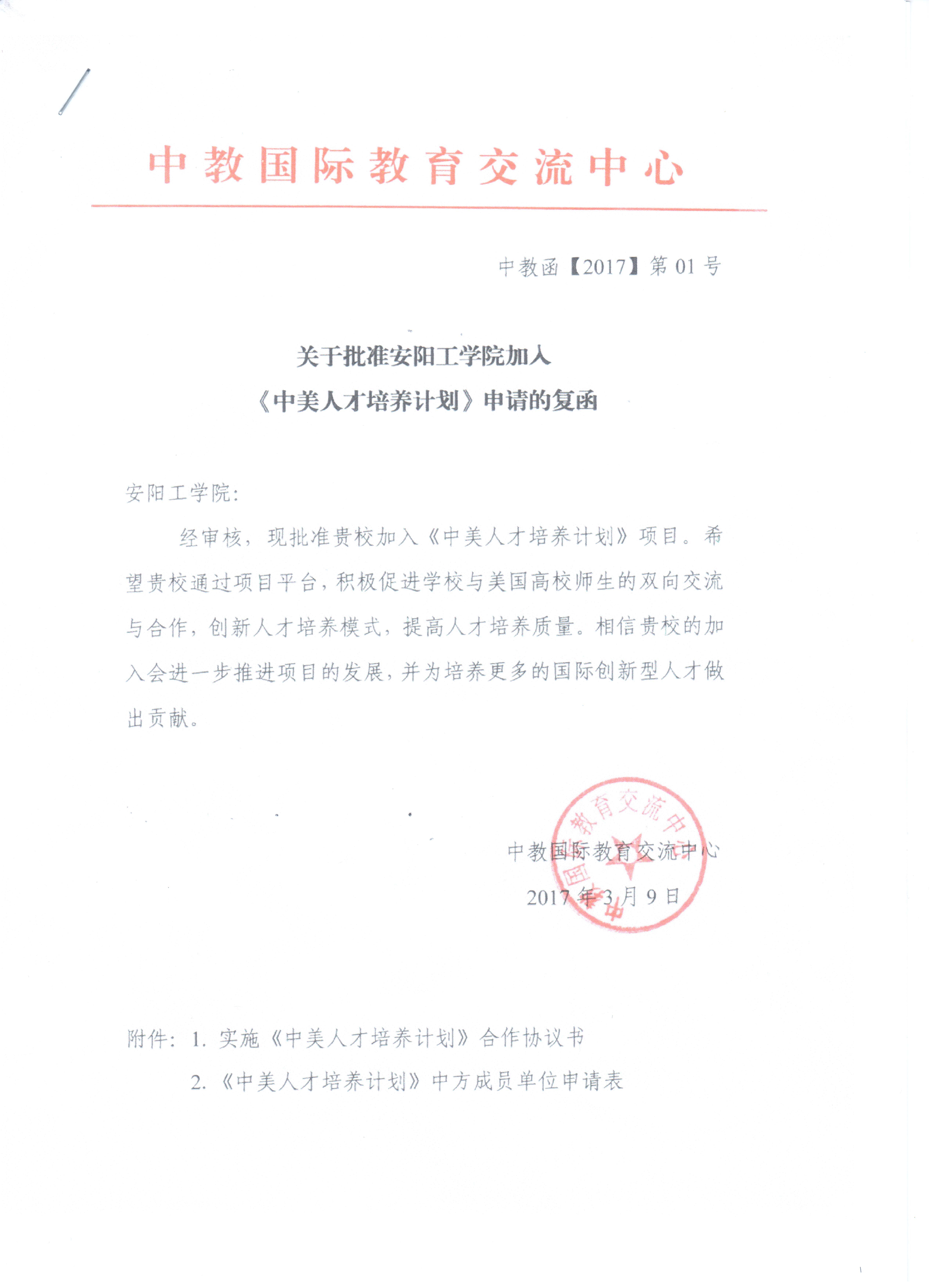 近日,我校接到中教国际教育交流中心批复函,同意我校加入《中美人才培养计划》。