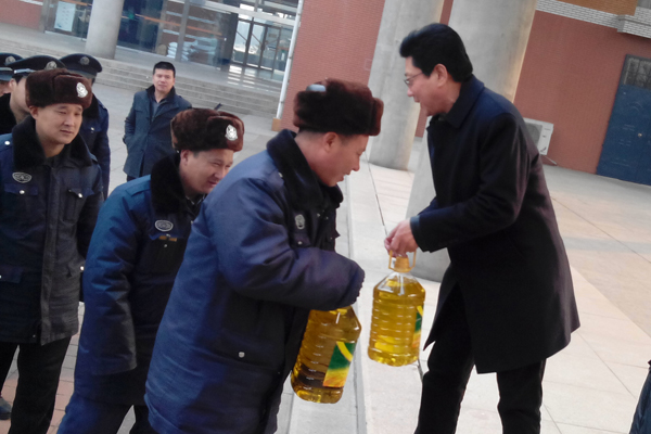1月24日上午,副校长王金涛在保卫处处长张瑞田等有关同志的陪同下,看望慰问了寒假期间坚守在一线的保卫处校卫队员,向他们表示节日的祝福和亲切的问候。