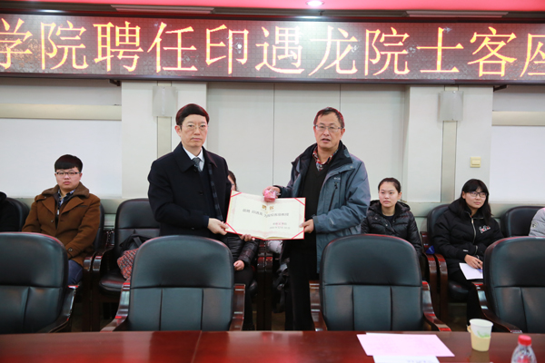 校长景国勋为印遇龙院士颁发聘书和校徽
