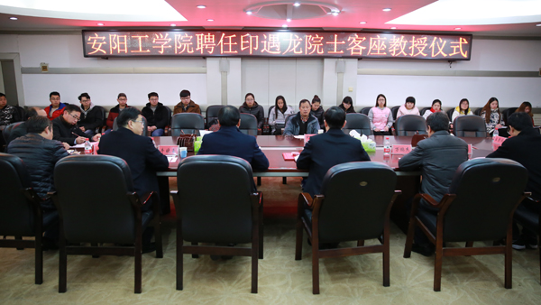 仪式上,校长景国勋代表学校对印遇龙院士欣然接受我校聘任,领衔我校“河南省动物疫病防控与营养免疫”院士工作站工作表示由衷的敬意和感谢,对印遇龙院士亲临学校指导表示最热烈的欢迎。景校长简要介绍了学校师资、教学、科研、学科建设等方面的情况,并真诚期盼印遇龙院士常来我校,不吝赐教,指导我校相关学科(专业)建设、科研工作和科研团队建设等,推动学校事业快速发展。景国勋为印遇龙院士颁发了客座教授聘任书和我校校徽。印遇龙院士对我校的盛情邀请和安排表示感谢,并希望双方在动物养殖方面加强交流与合作,提升学科水平,共同发展。