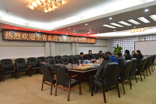 会上,副校长王金涛对全省高校安全工作检查组的到来表示热烈欢迎。保卫处处长张瑞田就我校的消防工作、危险化学品处理、安全防范、住房问题等方面做了详细汇报。汇报结束后,检查组查看了相关资料。