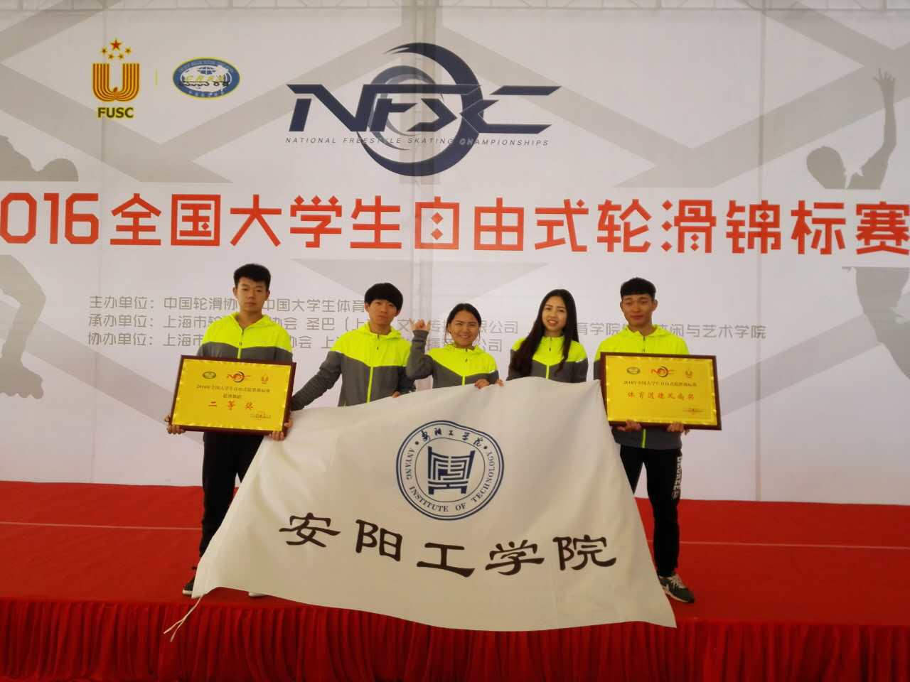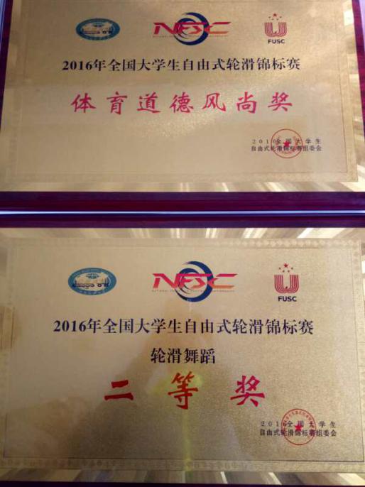 12月3日—4日,2016年全国大学生自由式轮滑锦标赛在上海体育学院举行,我校轮滑队在教练赵国强老师的带领下,团结协作、顽强拼搏,最终获得轮舞项目比赛二等奖,并获得体育道德风尚奖称号。