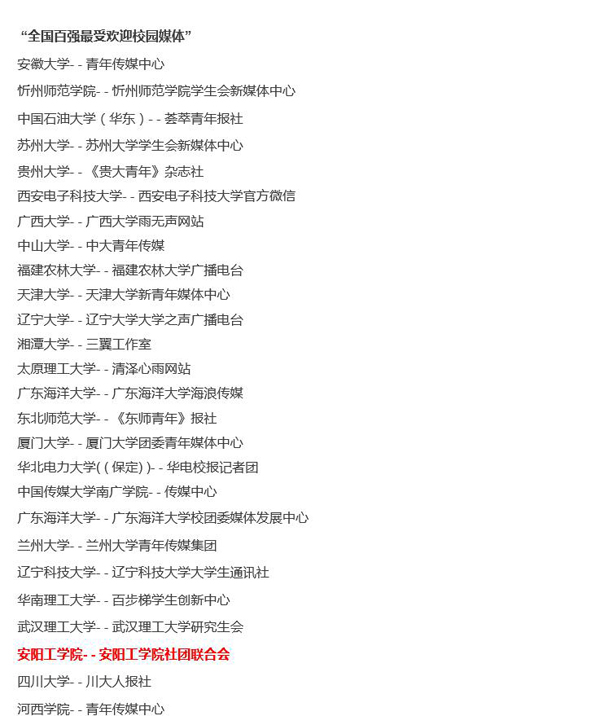 我校社团联合会名列“全国百强最受欢迎校园媒体”