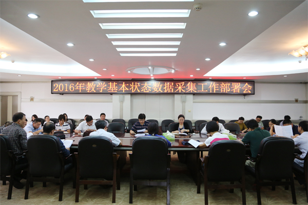 9月19日上午,我校在行政楼二楼会议室召开2016年教学基本状态数据采集工作部署会议。副校长李学志出席,党办、校办、教务处、教评办、人事处等十七个与数据采集相关的职能部门、各院(部)及北校区负责人参加了会议。