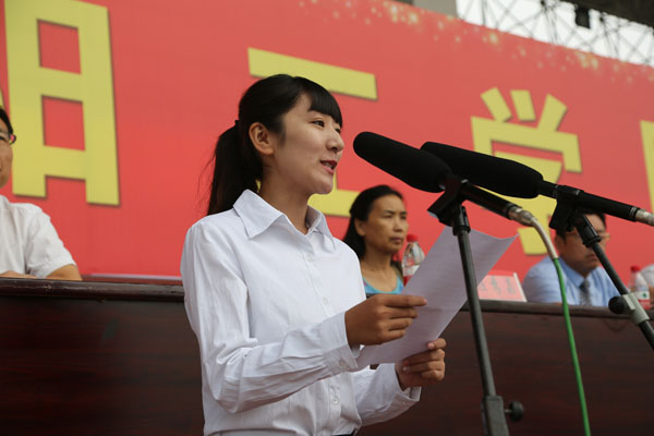教师代表李菲、老生代表张一方、新生代表王浩雄分别上台发言,表达了他们对学校的向往与热爱。