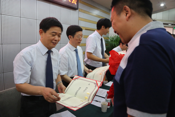 与会领导为受到表彰的老师颁发了荣誉证书。