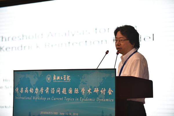 日本青山学院大学教授Y. Takeuchi教授、美国佛罗里达大学M. Martcheva教授、迈阿密大学阮士贵教授先后在开幕式上致辞。