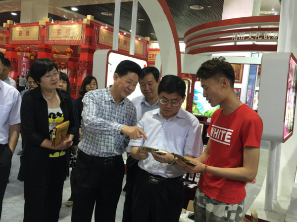 5月27日,作为航空文化运动旅游节的组成部分,由安阳市人民政府主办、安阳市文广新局等单位承办的 “2016安阳文化产业精品展”在安阳国际会展中心开幕。我校艺术设计学院学生的创意文化产品和部分教师的油画作品首次参加展出。安阳市常务副市长陈志伟、我校副校长王金涛莅临展区进行指导。