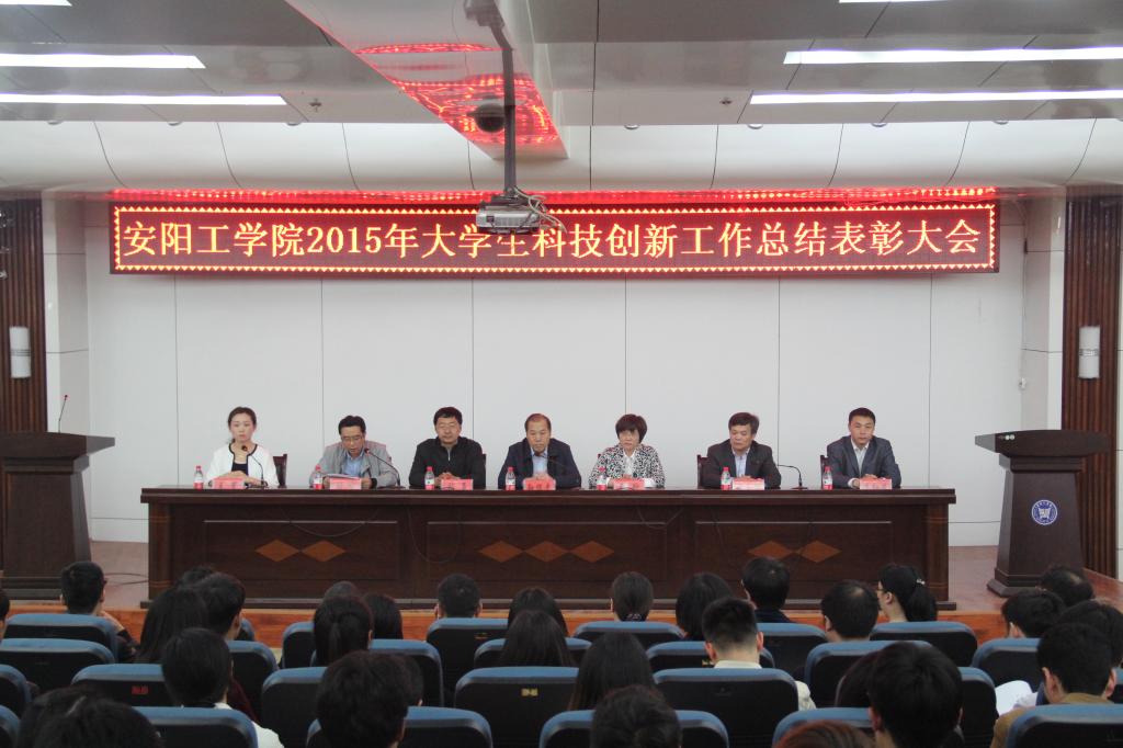 4月20日下午,我校在艺术楼二楼会议室召开2015年大学生科技创新工作总结表彰大会,副校长孙保平、张玲出席,教务处处长张勇、科研处处长姚玉钦、学生工作处副处长刘冰、招生及就业指导处副处长李红安及各学院党总支书记、副书记、副院长、团总支书记、教研室主任、科研秘书、学生代表300余人参加大会。校团委书记王斐主持会议。