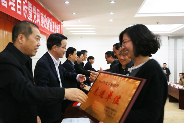校党委副书记刘新田宣读2015年度目标管理先进单位的表彰决定