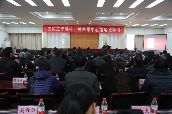 为贯彻落实党中央“全面从严治党”要求,进一步增强领导干部政治规矩意识和廉洁自律意识,1月7日下午,我校在行政楼四楼会议室召开校处两级中心组理论学习扩大会议。会议邀请河南省纪委研究(法规)室主任杨蕾,为全体校级领导干部和125名处级干部作了一场题为《中国反腐败形势与任务》的专题辅导报告。校党委副书记、工会主席杨培主持会议。