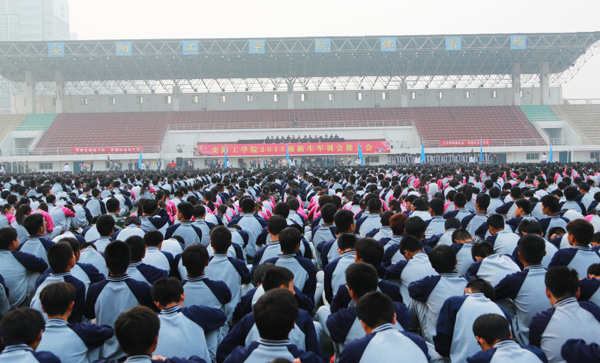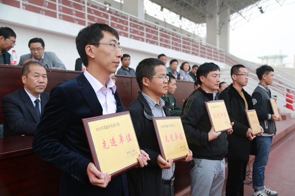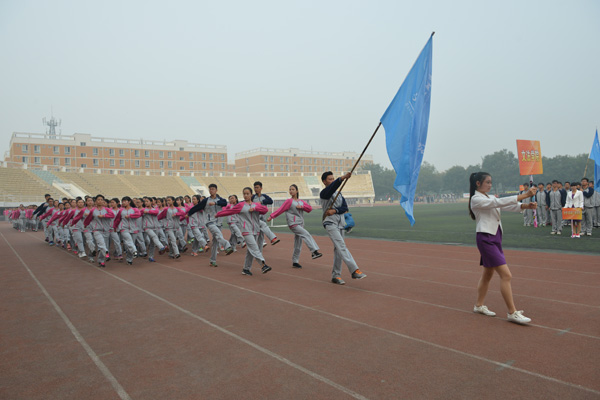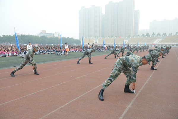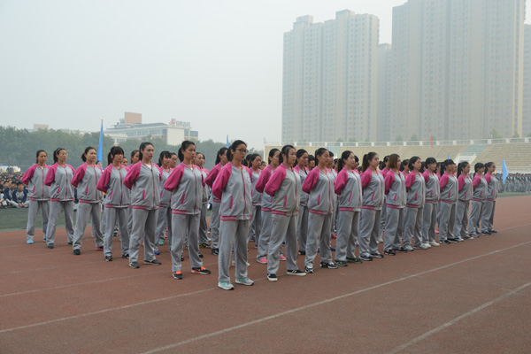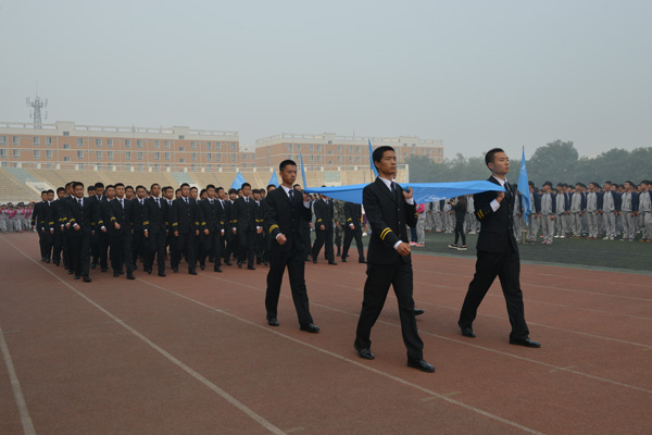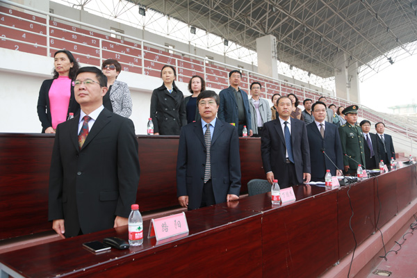 10月20日下午,我校在南体育场举行2015级新生军训会操大会。校领导刘新田、孙保平、李学志、万鹏杰、王庆飞、路阳及71620部队副团长刘贺亭出席,各有关职能部门负责人、各学院党政领导、新生辅导员和2015级全体新生参加会操大会。大会由副校长孙保平主持。