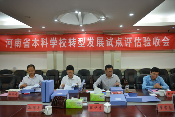 9月14日下午,以河南理工大学副校长景国勋为组长的河南省教育厅本科学校转型发展试点评估验收专家组一行4人莅临我校,对我校本科转型发展试点建设工作进行验收评估。