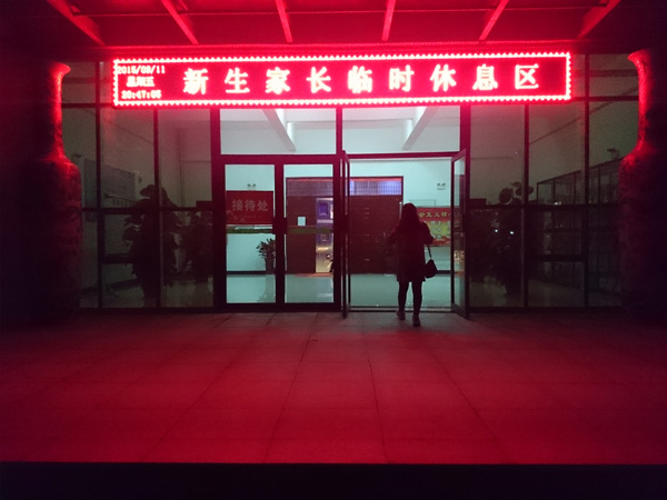 为了满足家长和学生需求,学校专门设立了两个家长休息区,一个是专为日间报到的学生家长提供临时休息,设有座位和饮水机;另一个则是在学校球类训练馆内设置了200多张床铺,为夜间到校的学生和家长提供临时住宿。学校还一如既往地设立绿色通道,尽力帮助家庭困难学生入学。