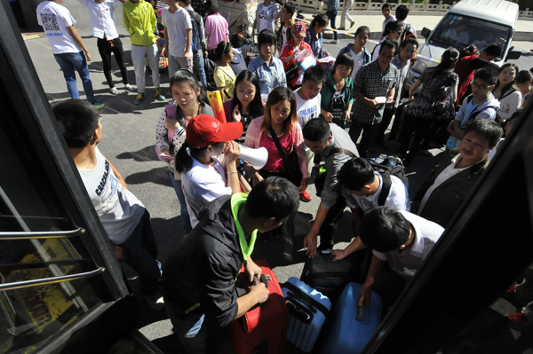 9月12日早上七点,我校迎新志愿者在校团委的率领下,分别乘坐8辆迎新专用车前往安阳火车站、安阳高铁站、汽车客运中心站和汽车客运东站,迎接从祖国各地前来求学的2015级新生。我校校园内人潮涌动,学校精心准备的迎新工作也如火如荼、有条不紊展开。