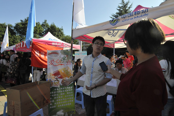 早上六点,设立在学校大门口的各接待点的学生就开始忙碌起来。生物与食品工程学院学长学姐们特意为前来报到的新同学送上了他们亲手制作的面包和酸奶,在服务新生的同时,展示了本学院的专业特色。