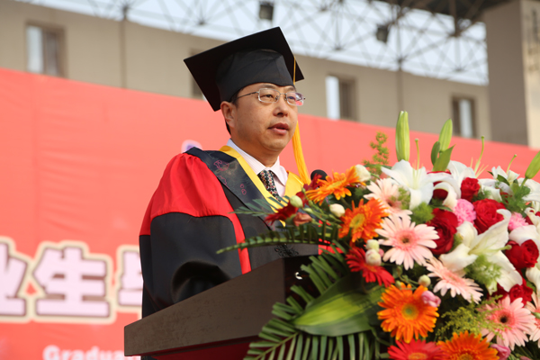 最后,在热烈的掌声中,校长任中普教授发表了热情洋溢的讲话。他首先代表校党委、校行政向圆满完成学业的2015届毕业生表示热烈的祝贺和衷心的感谢,向即将告别母校,奔赴新征程的毕业生们提出希望,希望他们能够继续秉承“明德修身,立风养性,博学致知,笃行建业”的校训,不断修炼内心、不懈强健体魄,虚怀若谷、见贤思齐;希望他们踏踏实实面对一切,踏踏实实做人,踏踏实实尽责,踏踏实实学习,踏踏实实工作,将国家的繁荣昌盛和个人价值的实现结合起来,自觉践行社会主义核心价值观,兢兢业业,坚守职业,努力成长为德才兼备的公民楷模和建设祖国的栋梁之才,在更为广阔的天地里报效祖国,服务人民。