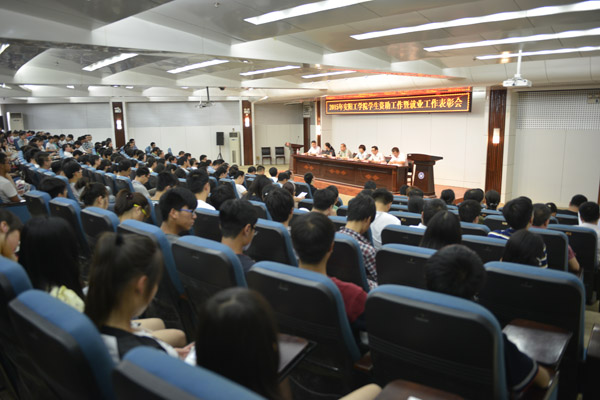 6月3日下午,我校在艺术楼二楼会议室召开学生资助工作暨就业工作表彰会,对在2014年度学生资助和就业工作中做出突出贡献的先进集体和先进个人进行表彰。副校长孙保平、张玲出席,学生工作部(学生工作处)、团委、招生及就业指导处等相关职能部门负责人、各学院党政负责人、团总支书记、辅导员、学生代表等200余人参加大会。